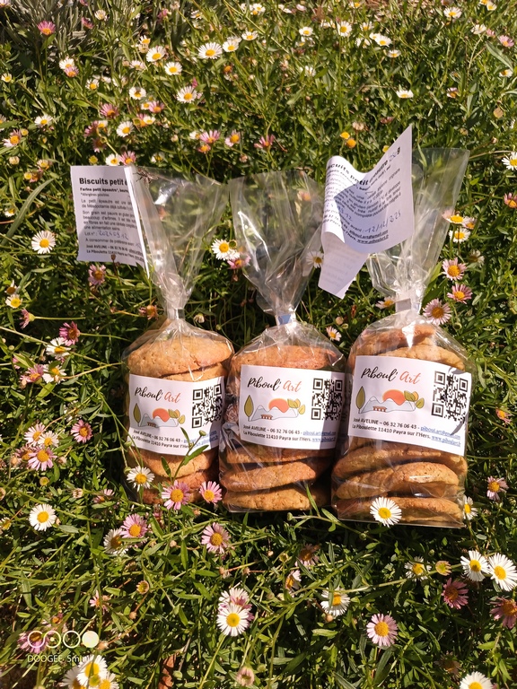 Côté produits, nous transformons céréales, fruits et plantes pour produire biscuits, confitures et sirops, sans oublier le miel de nos abeilles.